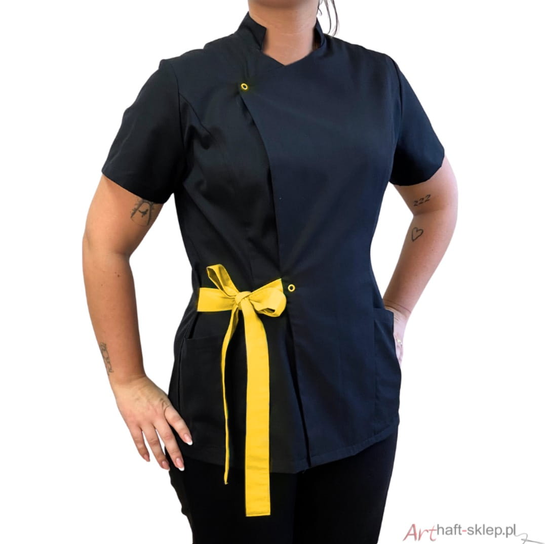 Nasza najnowsza propozycja fartuszka kosmetycznego w wersji wiązanej to idealne rozwiązanie zarówno dla salonów kosmetycznych, jak i placówek medycznych. Fartuszek ten ma delikatny dekolt, który subtelnie podkreśla szyję. Komfortowe rękawki pozwalają swobodnie wykonywać zabiegi, nie krępując ruchów. Dodatkowo, ten nowoczesny fartuch posiada praktyczne kieszonki, które są bardzo użyteczne podczas pracy.