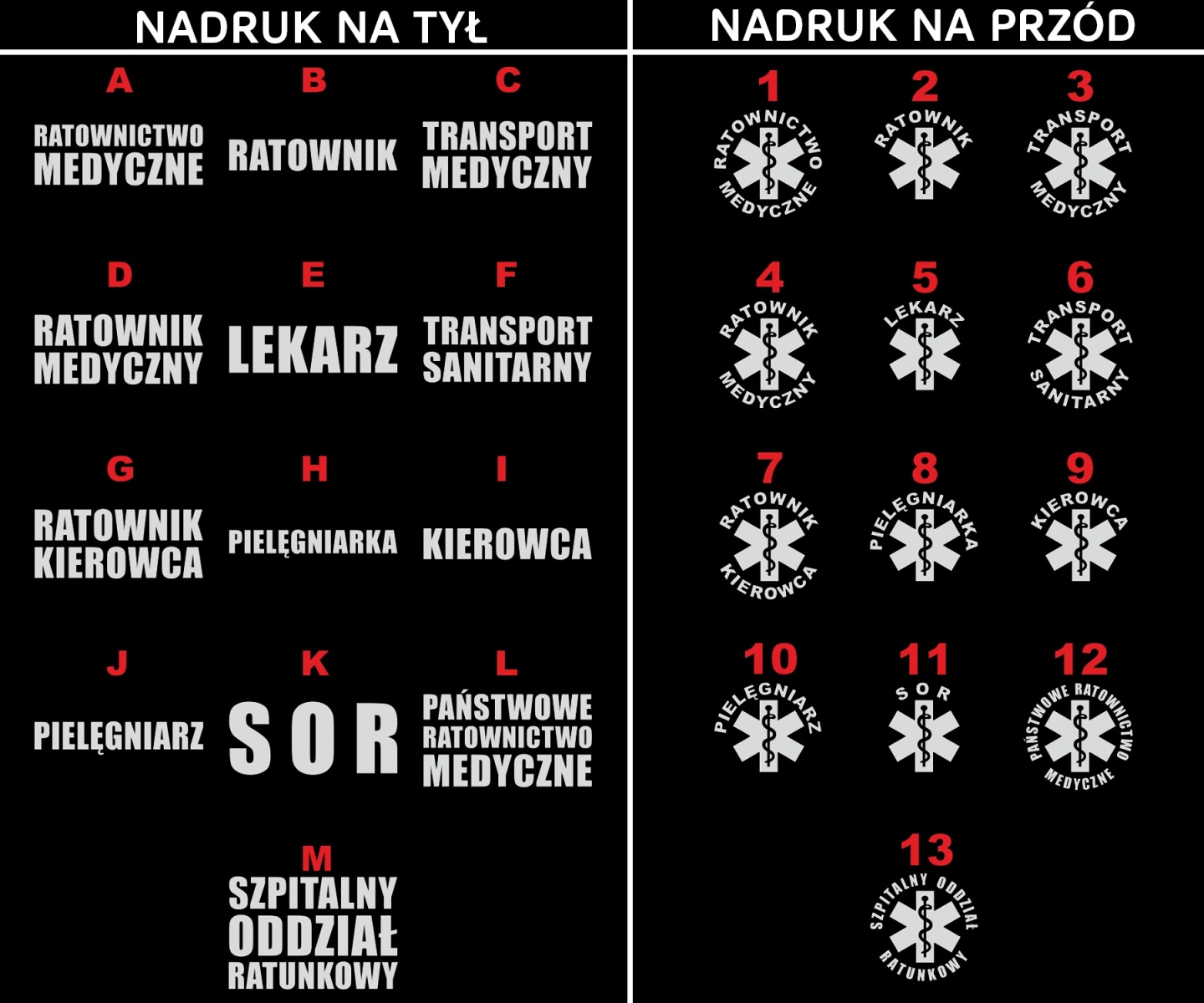 Możliwość wyboru wzorów nadruków z przodu i z tyłu koszulki.